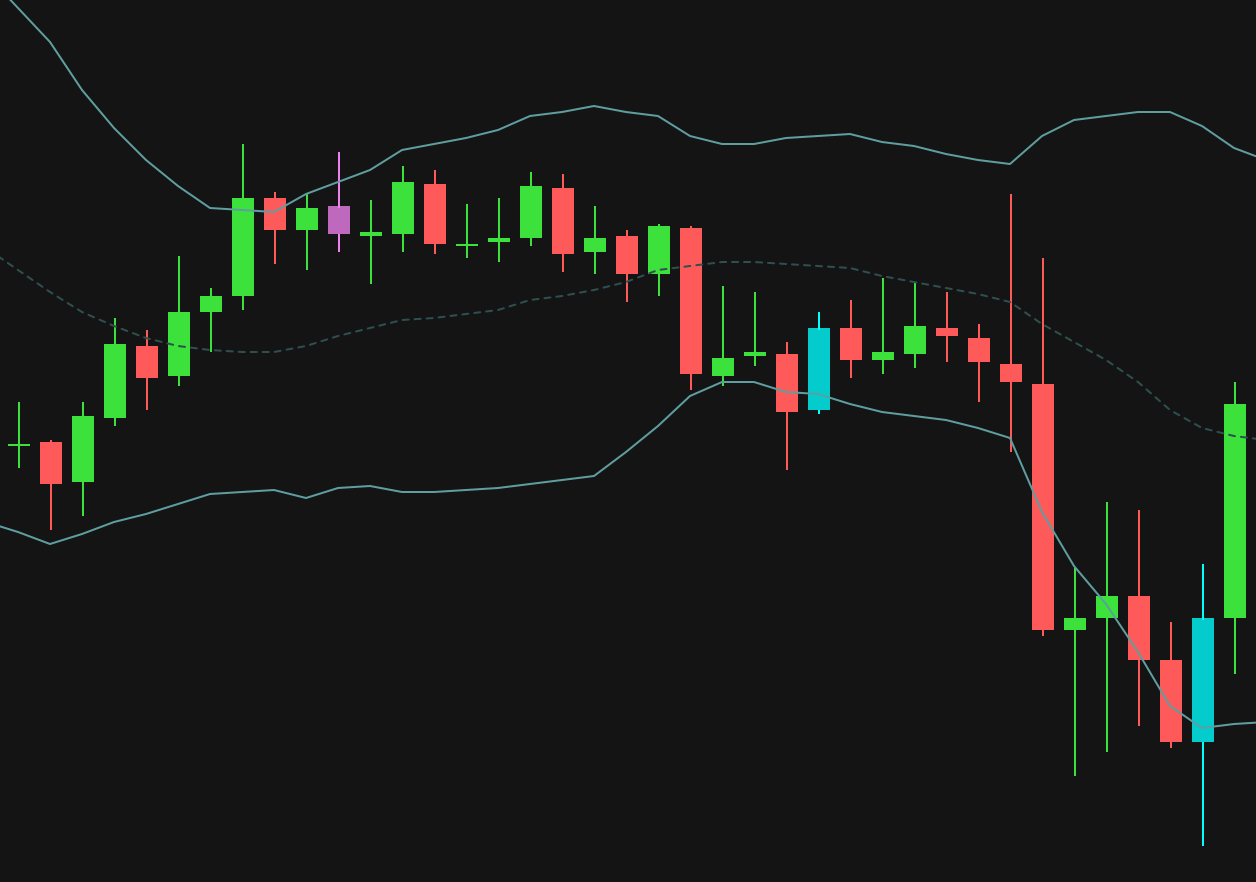 Highlights engulfing candles off the Bollinger Bands. Often...
