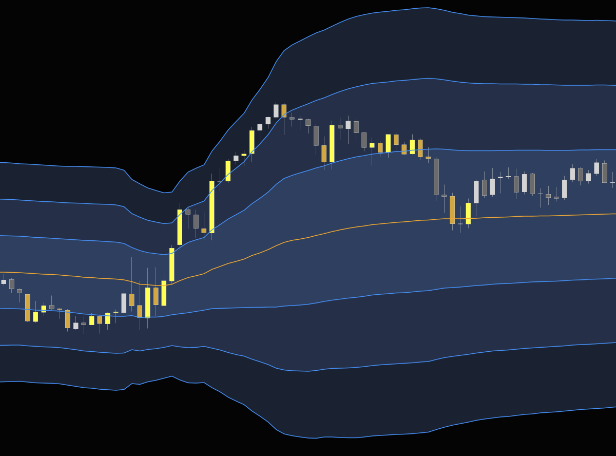 It also supports highlighting bars which are inside/outside of the "balance region" formed by the +1 and -1 Std Deviation bands. It can also highlight bars that are touching VWAP or any Std Deviation band.